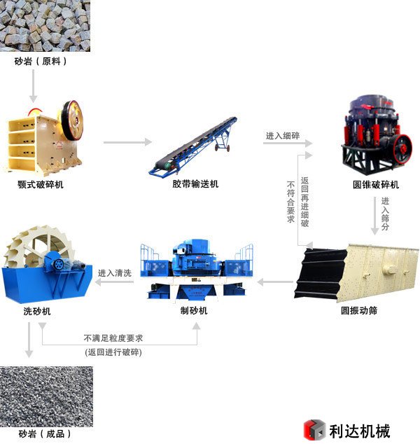 4、最終,進制砂機的花崗巖一部分制成砂,經(jīng)洗砂機清洗后制成制品砂。洗砂環(huán)節(jié)可依據(jù)用戶的出產(chǎn)要求和質(zhì)料狀況進行挑選。